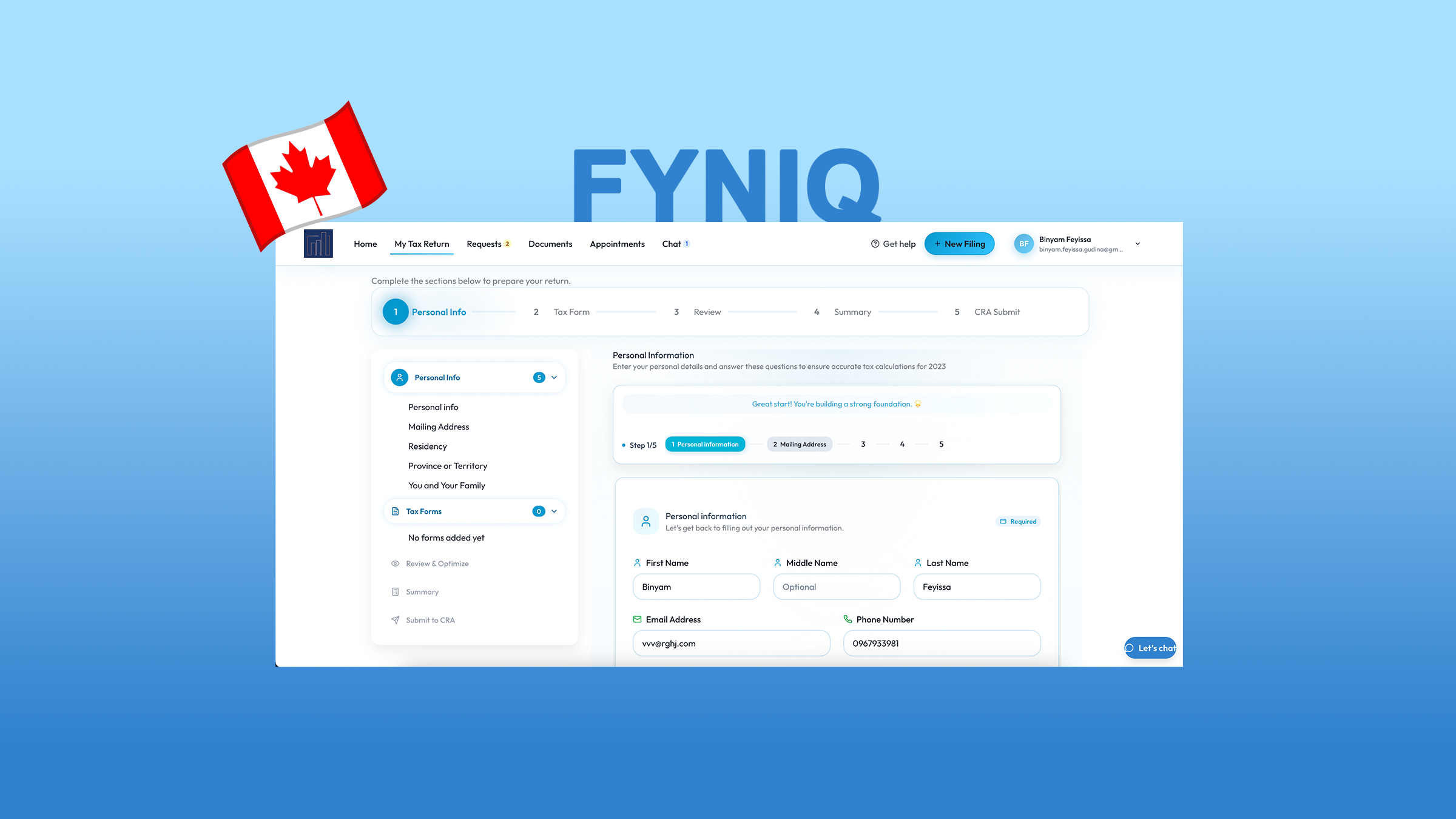 Developed the front-end of FynIQ, a Canadian tax-filing system.